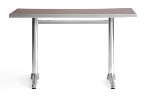 Add a low-key contemporary panache to your dining area with the sleek Altgeld Dining Table. This table is perfect for a group of 4-6 to gather and enjoy drinks and conversation. The Altgeld Table includes an aluminum base and legs with adjustable levelers as feet so you can stabilize the table to your preference. The tabletop is dark brown laminated engineered wood with a silver frame and uses deep-well sockets for assembly. The Altgeld Restaurant Table is also offered in a smaller, tall round bar table option, square dining table size, and also with a beech effect finish (each sold separately). To clean, wipe with a damp cloth. Made in China; fully assembled.