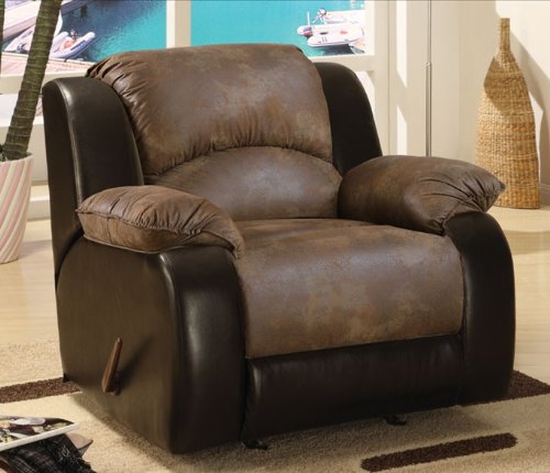 Rocker Recliner in Brown Suede and Leatherette Overviews