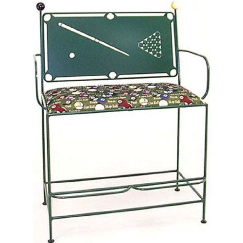Complete your game room with the outstanding Spectator Bench with Pool Table Backrest by the Grace Collection. This unique metal bench is constructed from wrought iron, comes in a Sand finish (with more finishes sold separately, see Matching Items below) and features a pool table motif with 8 and 9 ball accents. Built to accommodate up to two people at once, the Spectator Bench measures 40" W x 27" D x 51" H and comes with a cushioned seat with a fabric seat cover in your choice of more than 50 available finishes and patterns. With its playful design and customizable features, this bench from Grace will add a fun feel to any home.