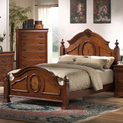 Richardson Panel Bed by Coaster Fine Furniture The stately, refined look of this queen panel bed adds timeless style to your master bedroom suite. You will never tire of the beautiful look of the carved crest on the headboard, turned finials on the bed posts, and inlaid look of the center rosette oval. The proportions of the tall headboard draw your eye to it, creating a stunning centerpiece to your master suite. This bed is available in Queen, King and California King sizes. Features: Low Profile Panel Bed Carved Crest on Headboard and Footboard Solid Hardwood and Cherry Veneers Turned Post Finials Stunning Detail Caramel Finish Bracket Feet Assembly Required Ships Via Freight Dimensions: Queen Size - 64.75" W x 90.25" D x 61.75" H Eastern King Size - 81.25" W x 90" D x 62" H California King Size - 81.25" W x 94" D x 62" H Weight: Queen - 197.3 Lbs. Eastern King - 221.1