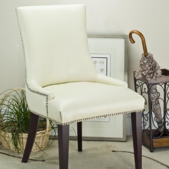 From Safavieh Home Furnishings. Solid wood frame and legs. Choose bi-cast leather or 100% linen upholstery. Fabric cover should be spot cleaned. Read more about bi-cast leather care. Trimmed with elegant nailhead accents, our Becca Dining Chair makes any meal a special occasion. This chair features low-rise arms and a clean, updated look that will add a sophisticated, yet comfortable, touch to your dining experience. . . . . . Arrives fully assembled . Imported.