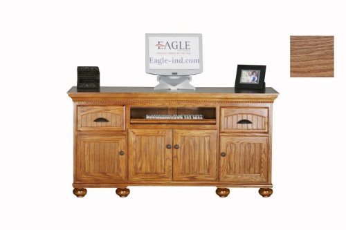 American oak hardwood and traditional styling make the Classic Oak collection one for the ages. Crown moulding, antique brass hardware and solid oak frames and raised panel doors combine longevity and classic style in this enduring and popular collection. Color: Sandy Oak. 1 Keyboard Pull Out. 2 Beadboard Drawers. 4 Beadboard Doors. Roape Molding. Bun Foot Base. Dimensions: 32-3/4" H x 64" W x 25-1/2" D.