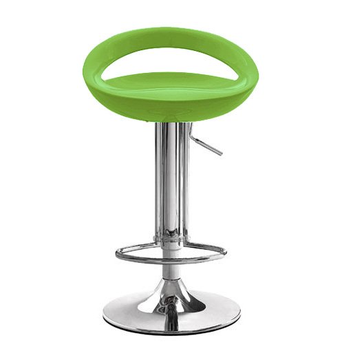 This simple yet intriguing bar stool is a new design that uses the best of both modern and retro design. The seat is made from durable ABS resin finished in gloss enamel. The seat is ergonomically designed and molded for optimal comfort and comes with an arching crescent shaped backrest for added support. The seat sits atop a chromed stem which rests on the adjustable height gas lift and 360 degree swiveling strut mechanism. Also included is a footrest made from chrome plated tubular steel. The whole stool stands on a sturdy circular base which has a rubber ring that protects your floor from any scuffs or scratches. Ideal for use in a home bar or kitchen, breakfast nook or gaming area.