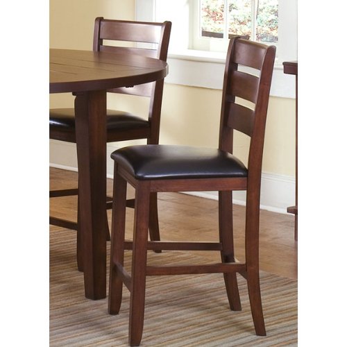 Ladder Back Pub Stool Features: Heavy Tapered Legs Generously Padded Upholstered Seats Nylon Chair Glides Some Assembly Required.