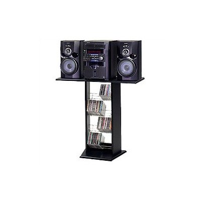 The Mini-system Stand's sleek, contemporary design provides a small foot print to free up floor space. It fits virtually all mini-systems and executive stereos. It features chromed steel CD storage racks that are angled for easy viewing. This component and CD stand is ideal for the office, bedroom, den, dorm or family room. Features: Accommodates nearly all mini-systems and executive stereos Construction of shelves, base and uprights: MDF wood Finish: black satin Up to 80 CDs Protective feet included that won't mar floors and they absorb vibrations Wire guides included so wires can be hidden Ready to assemble Specifications: Overall dimensions: 33" W x 33" H x 12" D