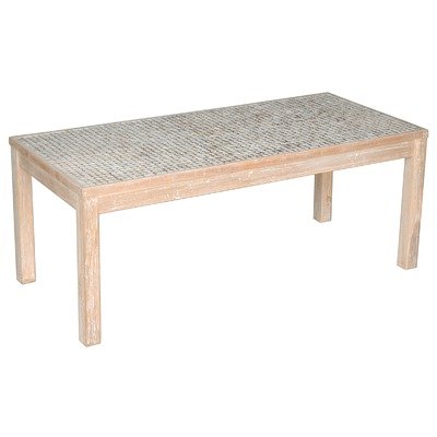 JV-NHT404-WPWP Features: -Dining table.-Hand crafted.-Vintage cottage style. Construction: -Constructed of wood and laminated coconut shells. Color/Finish: -White Patina finish. Assembly Instructions: -Assembly required.