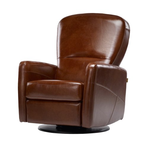 This classically styled, full-featured glider boasts straight square arms, a square back with rounded corners, a gentle glide, and even a recline feature. But this isn't your grandfather's leather recliner; it boasts a unique look all its own, a swivel base, and an integrated footrest, for a comfy design you're bound to love as you're rocking your baby to sleep.