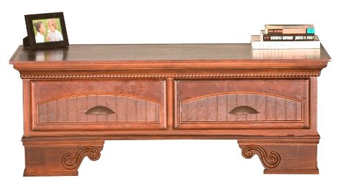 American oak hardwood and traditional styling make the Classic Oak collection one for the ages. Crown moulding, antique brass hardware and solid oak frames and raised panel doors combine longevity and classic style in this enduring and popular collection. Color: Concord Cherry. 2 Felt-Lined Bead Board Drawers. Rope Moulding. S-Base. Dimemsions: 19 H x 48-3/4 W x 25-1/2 D.