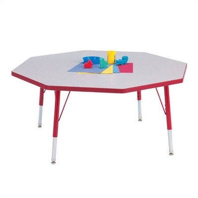Color:Gray/Blue, Height:15' - 24' Rainbow Accents Kydz Activity Octagon Table Overall 48' diameter. Thermo-fused edgebanding means no place for germs to hide and is stronger than t-molding. Laminate tabletops 1.125 thick. Edgebanding in several colors. Three heights available. Upper leg powder coated to match edgebanding color. Quick mount legs, minimal assembly. Extra-safe dual-screw leg adjustability system. Legs adjust in one-inch increments. Nylon-based swivel glides prevent rusting. Helpful Hint: Most children---even 3 to 4 year olds---require 15'-24'table height.11'-15' hightables typically fit children just 1 to 2 years old. Five year warranty.