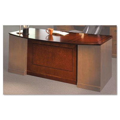 A transitional line of furniture ideal for the executive office. AA-grade North American hardwood veneers throughout. Rich cherry veneers surround distinctive walnut inlays and bird's-eye maple panels. Full-height modesty panel for privacy. Top Shape: Bow Front. Top Color/Finish: Bourbon Cherry. Width: 72". Depth: 39". Height: 29 1/2". Top Material: Bird's-Eye Maple Cherry Veneer Walnut. Frame Color/Finish: Bourbon Cherry. Frame Material: AA-Grade Hardwood Veneer. For Use With: and Mayline Sorrento Series Desk Pedestals and/or Mayline Sorrento Series Desk Legs. To complete the desk you must order desk top. Compliance Standards: California Air Resources Board (CARB) Compliant. Disclaimer Statement(s): Not freestanding. Requires two Desk Legs and/or File Pedestals sold separately.