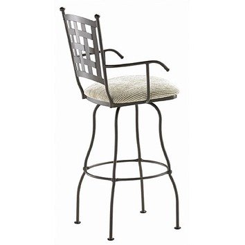 Seymour II 30"+(Sienna)(Espresso Back)(Skin 16) Finish: Sienna, Seat Back Finish: Espresso, Seat Type: Fabric - Skin 16 The fabric in this image is no longer available and the finish is metal meteor Features: -Armrests for added support.-Memory swivel option.-Solid birch wood seat option.-Durable and efficient welding joints.-Lead-free, environmentally safe, non- toxic paint.-High-temperature baked powder coating.-Product as pictured may vary slightly from swatches. Construction: -Heavy-gauge steel. Assembly Instructions: -Easy assembly of base, swivel, seat, and back using 6-8 screws. Dimensions: -Wood seat height: 30''.-Upholstered seat height: 31''.-Arm height: 36.5''.-Overall Dimensions: 46.5'' H x 21.5'' W x 21.25'' D. Warranty: -Residential application warranty is 10 years on metal structure and 1 year on fabric.-Commercial application warranty is 1 year on metal structure and 1 year on fabric.-If commercial application is not chosen, stools used in business will only have a 30 day warranty. Disclaimer: -Please note, Trica requires a signature on all residential deliveries.