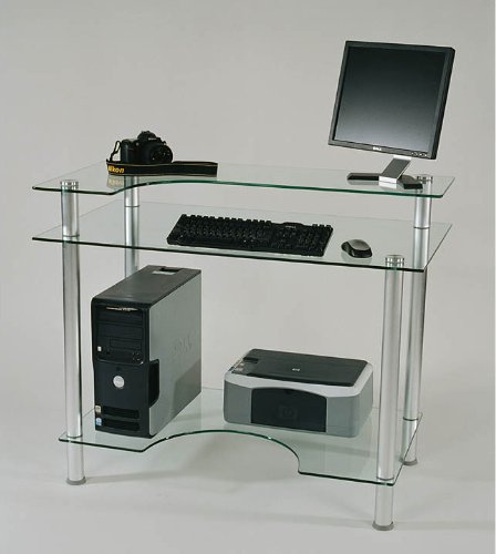 Corner Design Compact : Glass and Aluminum Computer Desk (Clear Glass and Aluminum) (4'H x 27"D x 43"W) We provide shipping detail from many suppliers here. You can check and compare pricing here also. >Compare Prices<