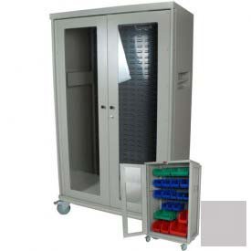 Harloff Supply Storage Cart with Louvered Panel For Hanging Bins - Light Gray This 43-3/8"W x 26-3/4"D x 71-7/16"H storage cart is made of 20-gauge steel for long lasting durability. Ideal for use where space for storage in the OR suite and SPD sterile storage area is at a premium and nurses need to locate supplies in a hurry. Louvered panel measures 36" W. Interior cabinet dimensions are 38-1/8"W x 20-1/8"D x 62"H. Quick View Plexiglas panels provide staff with easy stock checks/assessments. Enclosed and locking cabinet keeps items secure. Full wrap-around vinyl bumper protects walls and 5" premium rubber full-swivel ball-bearing casters (1 with brake, 1 tracking) provide easy transport. Fully assembled and ready to use (bins not included). 12-Year Limited Warranty. 48.00 L. 33.00 W. 78.00 H.