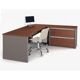 - Bestar Innova L-Shape Desk Set in Cappuccino Cherry