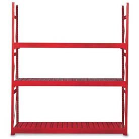 Equipto Vg Bulk Rack 48"W X 36"D X 84"H Starter W/Corrugated Steel Decking, Textured Cherry Red Equipto V-Grip Bulk Rack with Solid Decking : V-Grip Bulk Rack is designed to accommodate longer spans and heavier loads than conventional shelving. Bulk Rack beams engage V-Grip upright posts providing a rigid connection. Bulk Rack is designed to carry loads of 1500 lbs per level. Bulk Rack is available three ways - with a solid steel deck, wire decking or without decking to permit the customer to use his own material. Bulk Rack also comes in a starter kit (which both ends) or an add-on unit to be connected to another rack unit.