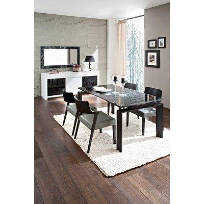 Domitalia TREND.T.149F.LNO/LIRICA/XTRA.C.SP1.VND/BASS.M.3C0. Studio Balutto Associati is a design, architecture and industrial design studio. Adriano Balutto, director and founder, has for some years now been assisted by his daughter, architect Veronica Balutto who has provided the studio with a valuable creative and innovative contribution together with a few other collaborators. Countless projects, which are the result of in-depth research and extensive experience gained in various parts of the world, have been successfully confirmed as market "best sellers". Active in the furniture and chair manufacturing world, the studio is in a privileged position of being able to meet any project demand: from a handle to complete pieces of furniture. Continuously updated in their research for increasingly innovative materials and ever more avant-garde technologies. Lirica Chair Designed by:Adriano Balutto Features: -Set includes Trend dining table, Lirica chair, Xtra-140 rectangular mirror and Bass sideboard. -Beech wood frame. -Black lacquered metal slides. -Tempered glass top and leaves. -Lirica chair: Leather seat, beech wood frame. -Rectangular mirror: MDF lacquered frame. -Sideboard: Two tempered glass doors, One MDF lacquered door. -Assembly required. -1 Year manufacturer's warranty. Specifications: -Dining table dimensions: 30" H x 63" - 98.5" W x 35.5" D. -Chair dimensions: 33" H x 21" W x 21.75" D. -Xtra occasional dimensions: 31.5" H x 55.25" W x 1" D. -Bass occasional dimensions: 33.5" H x 77.5" W x 19" D.
