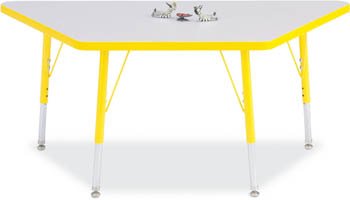 Jonti-Craft KYDZ ACTIVITY TABLE - TRAPEZOID - 30" x 60", 24" - 31" HT - GRAY/YELLOW MINIMAL ASSEMBLY REQUIRED 2 Per Box