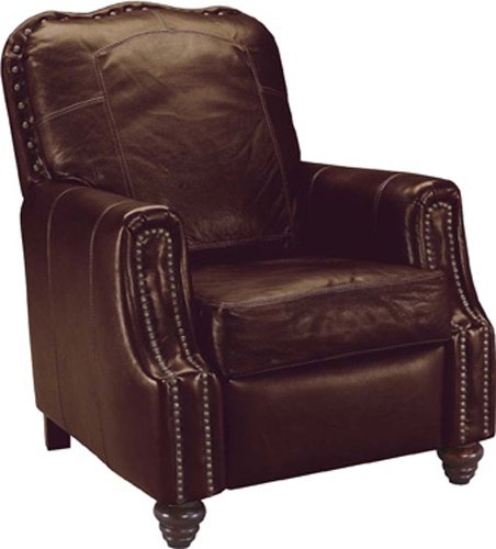 Enjoy your afternoon tea in this English inspired reclining chair. Gabby features antique designed back style leather decorative stitching traditional arms nailhead details and twisted wood decorative legs. Reclining Chair dimensions are 42-inch h by 41-inch d by 35-inch w.