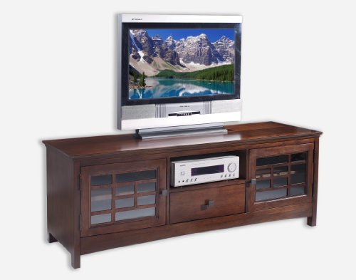 Finish:Natural Walnut A blend of Arts and Crafts with Asian undertones, this collection is accented by grills and sharp angles.Constructed of hardwood solids with veneersTwo side doors with one adjustable shelf behind each, one drawer and one open compartmentWire managementCustom pewter hardwareDry/damp cloth only on furniture, no oil based cleaners